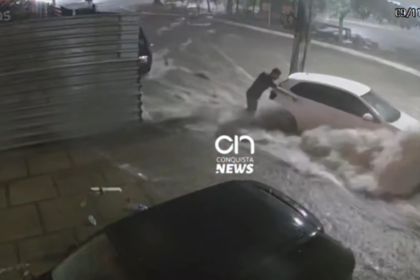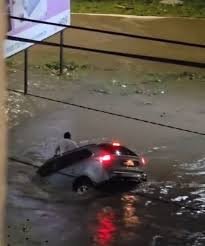 Carro é sugado por cratera durante fortes chuvas em Vitória da Conquista; Motorista foi resgatado com vida