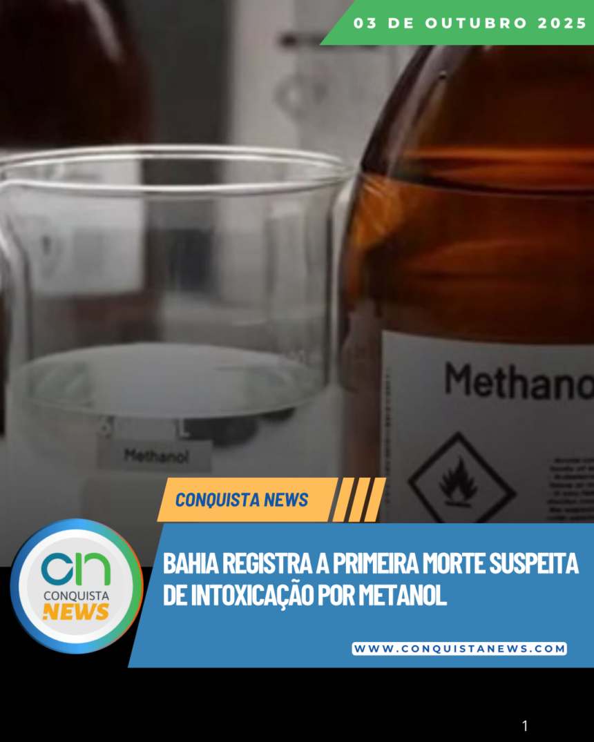 Feira de Santana, 3 de outubro de 2025 — A Secretaria da Saúde do Estado da Bahia (Sesab) e a Secretaria Municipal de Saúde de Feira de Santana informaram, nesta sexta-feira (3), a ocorrência de um caso suspeito de intoxicação por metanol no município.