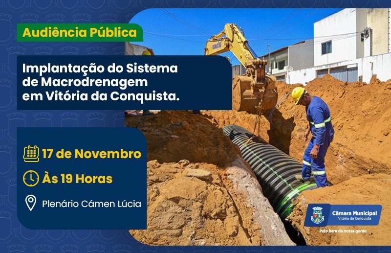 O episódio reacende o alerta sobre a urgência de medidas estruturais para enfrentar o problema das enchentes e alagamentos que, há anos, afetam diversos bairros do município. Com o objetivo de discutir soluções sustentáveis e planejar ações de longo prazo, a Câmara Municipal de Vitória da Conquista realizará, no próximo dia 17, às 19 horas, uma Audiência Pública para debater a implantação de um sistema de Macrodrenagem Urbana.