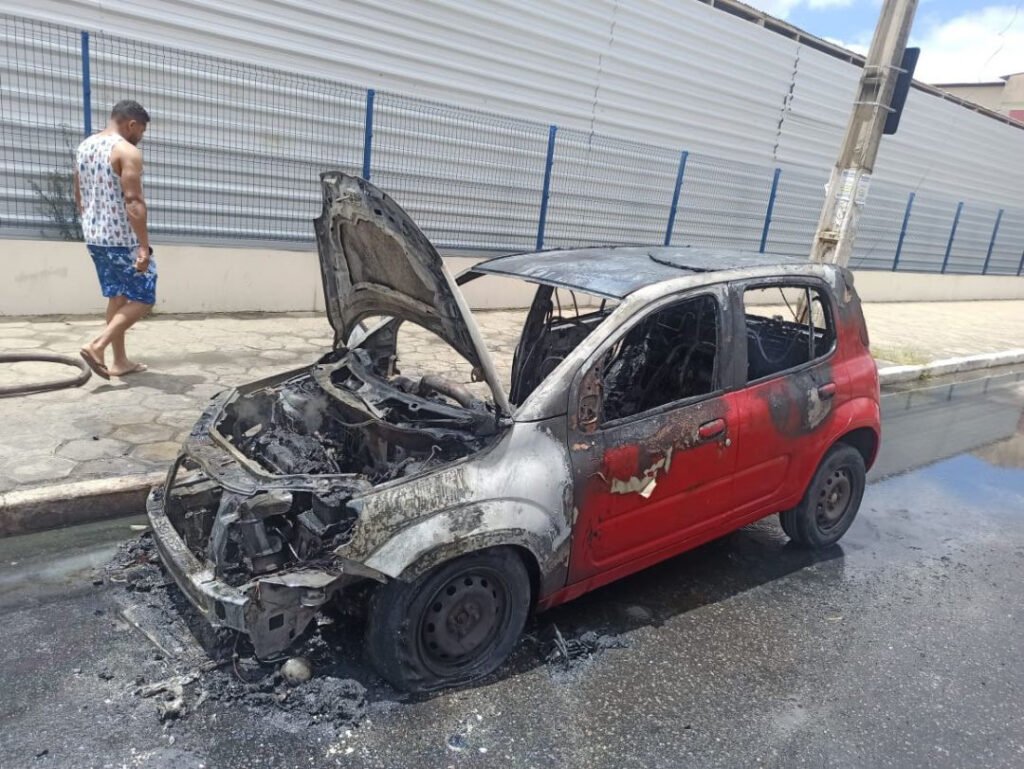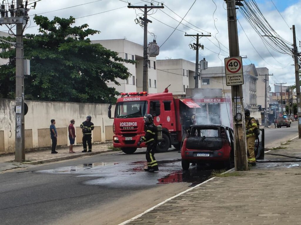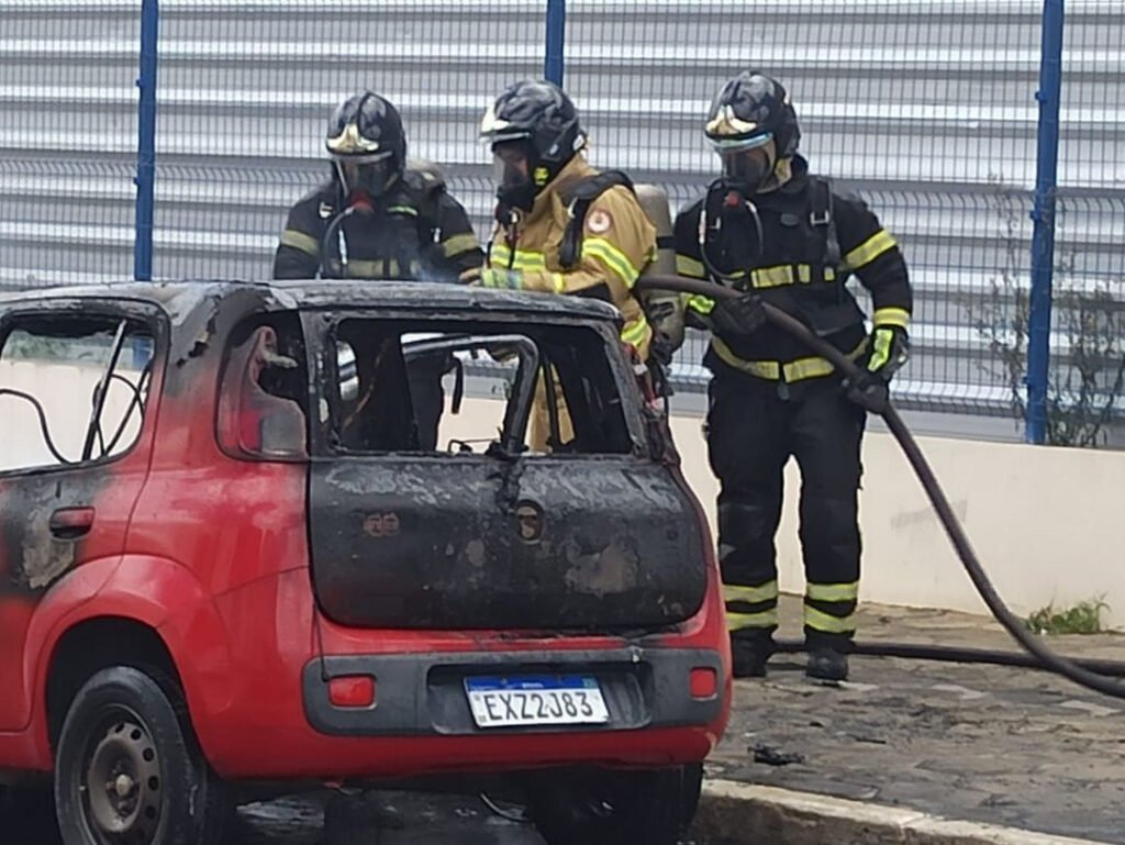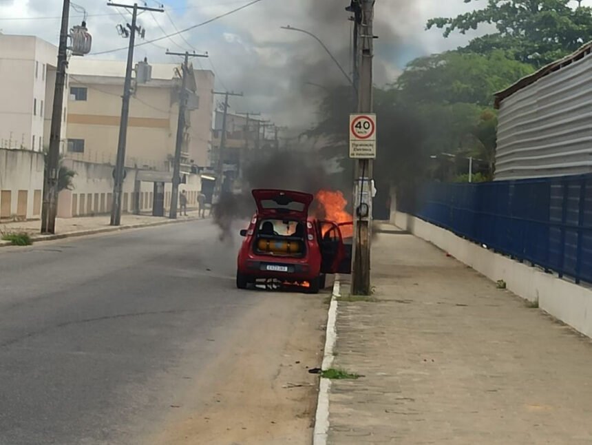 Um carro pegou fogo no início da tarde desta quinta-feira (25), na Avenida Frei Benjamim, em Vitória da Conquista, em frente ao Colégio Centro Integrado. O incidente provocou a interdição temporária da via.