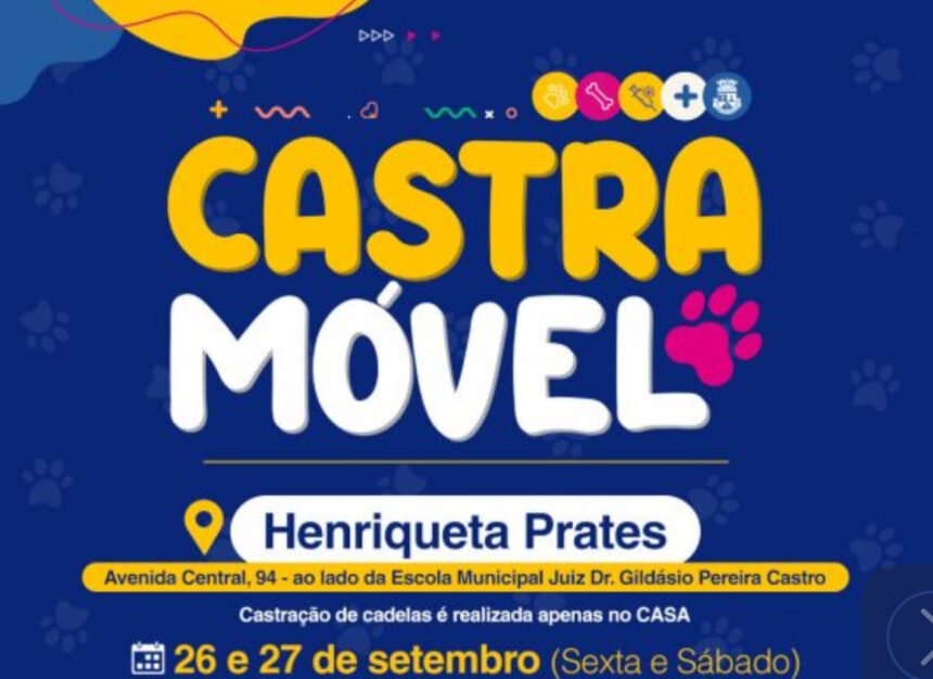 Nesta sexta-feira (26) e sábado (27), a Secretaria Municipal de Meio Ambiente (Semma) levará o Castramóvel para o loteamento Henriqueta Prates, situado na Zona Oeste, na Avenida Central, n° 94, ao lado da Escola Municipal Juiz Gildásio Pereira Castro.