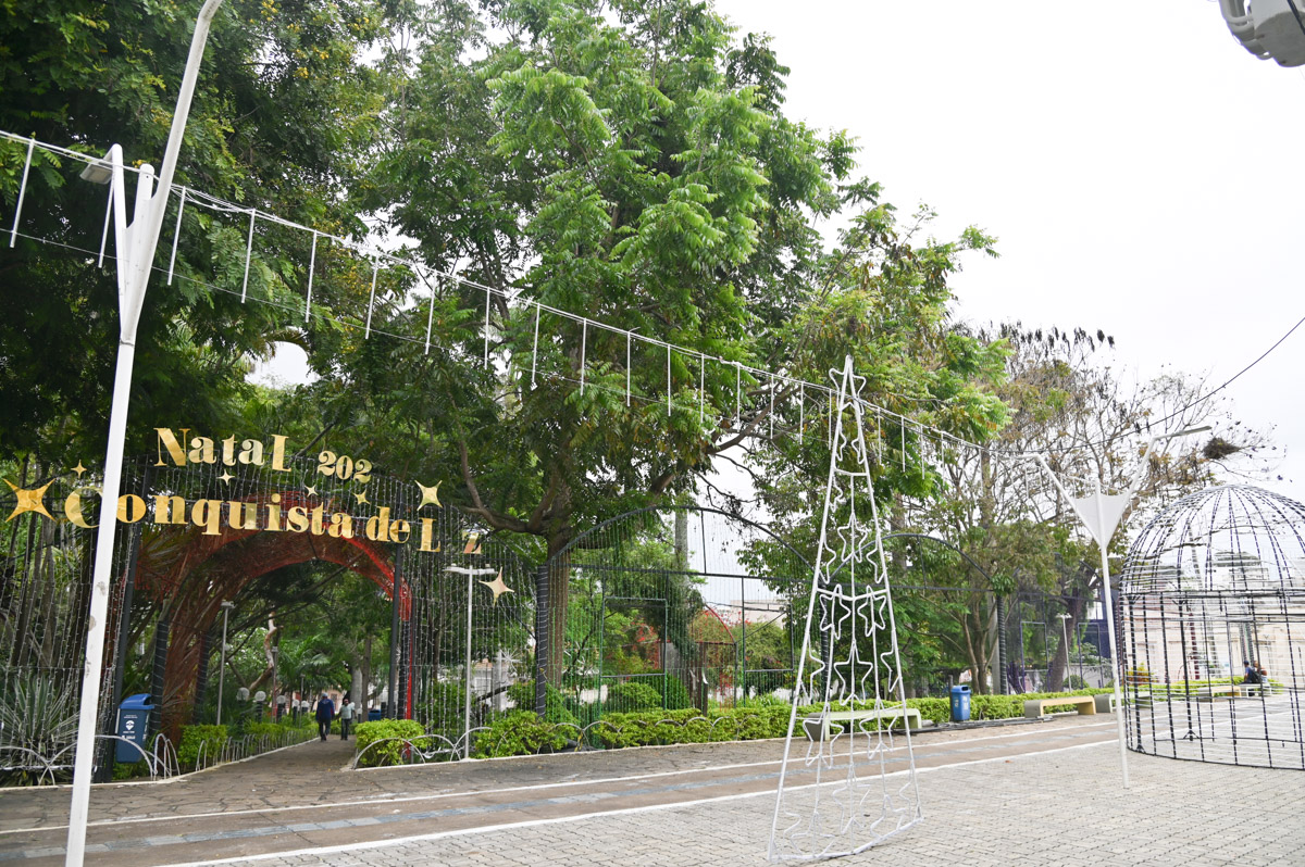 Com um espetáculo de luzes, ornamentação e sons, a decoração natalina atrai milhares de conquistenses e visitantes. Instalada num dos pontos mais importantes da cidade, a estrutura contará com um presépio de temática nordestina, duas árvores de LED de 3 metros instaladas em cada lago, pergolado de meteoros, cúpula instagramável e totens iluminados no entorno da praça.