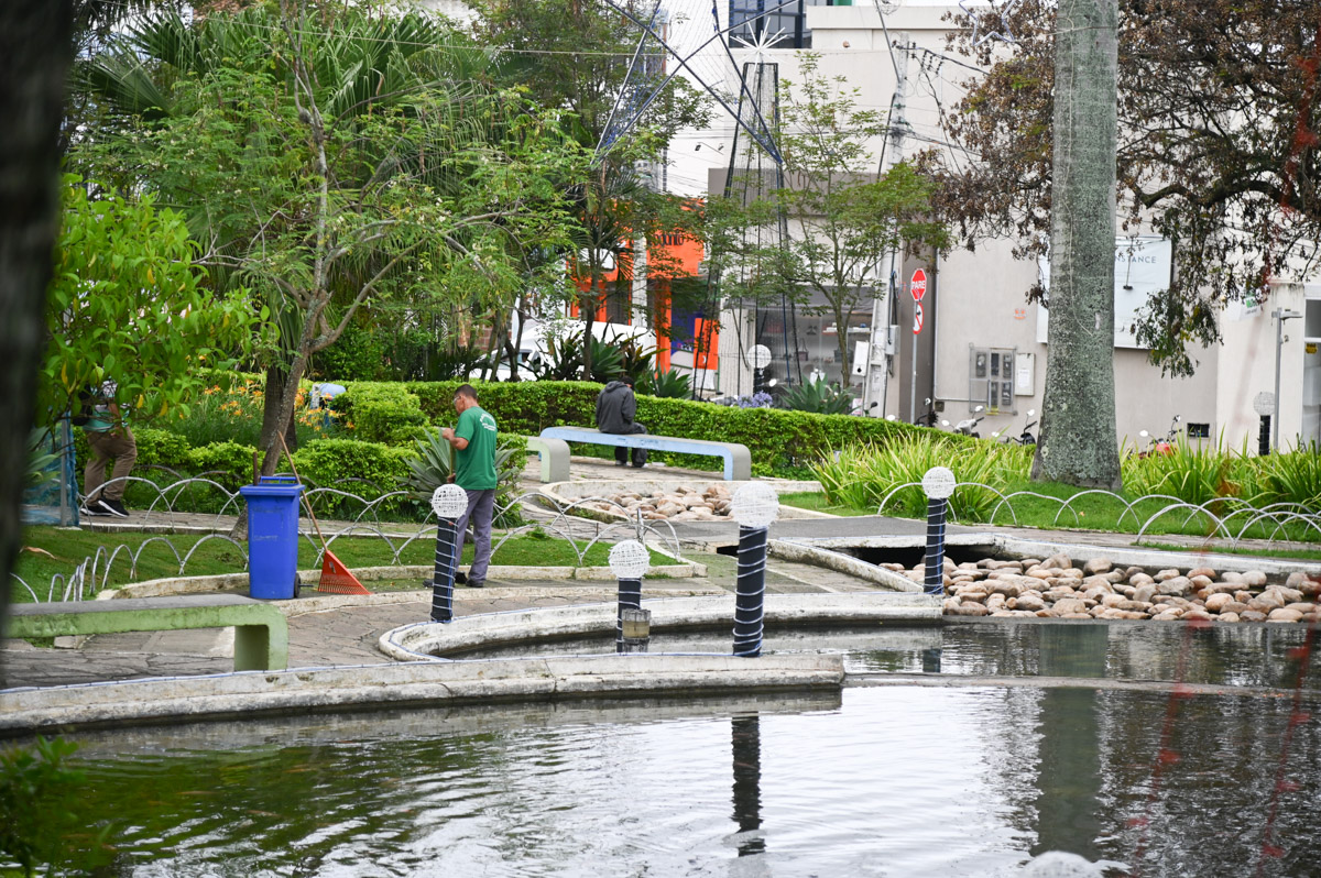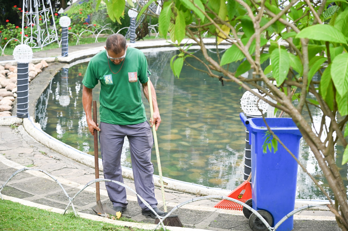 “A manutenção da praça ocorre o ano inteiro, com uma equipe fixa de domingo a domingo, com jardineiro, vigilância. O início de novembro é muito importante porque começamos com a ornamentação de Natal. A iluminação é feita pela Secretaria Municipal de Cultura, mas com apoio da Semma. Nossos servidores atuam desde a elaboração do projeto das luzes, até a instalação e depois. Foram 25 servidores da Semma, com apoio também da Sesep e de apenados, por meio da Secretaria de Governo. A limpeza dos lagos durou 10 dias, e fizemos também a lavagem dos córregos, das pedras, além de todo o serviço de manutenção”.