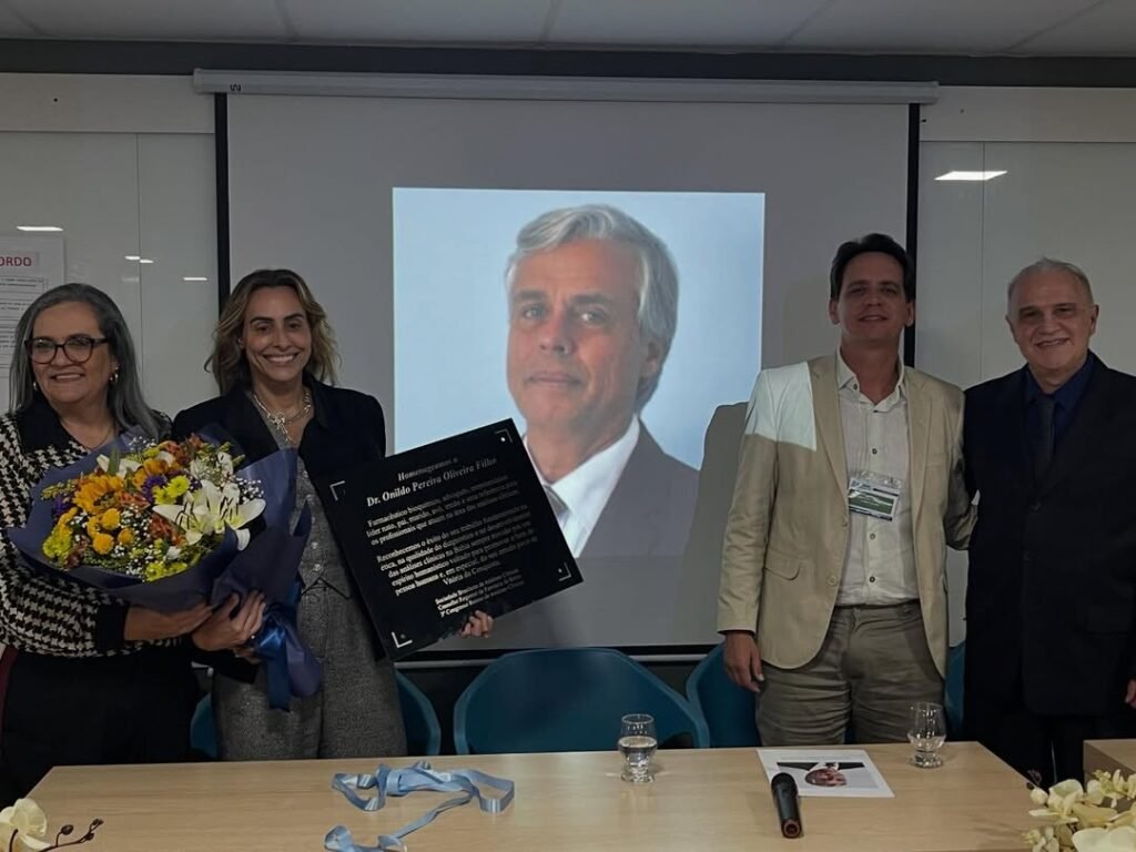 Um dos pontos mais emocionantes da noite foi a homenagem ao Dr. Onildo Pereira, do Labo. Familiares estiveram presentes — filhos, sobrinhos e parentes — e receberam o tributo com comoção, reforçando o legado deixado por Onildo para o setor laboratorial e para a comunidade científica regional.
