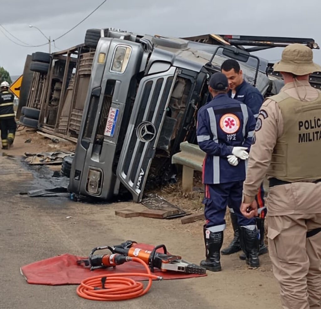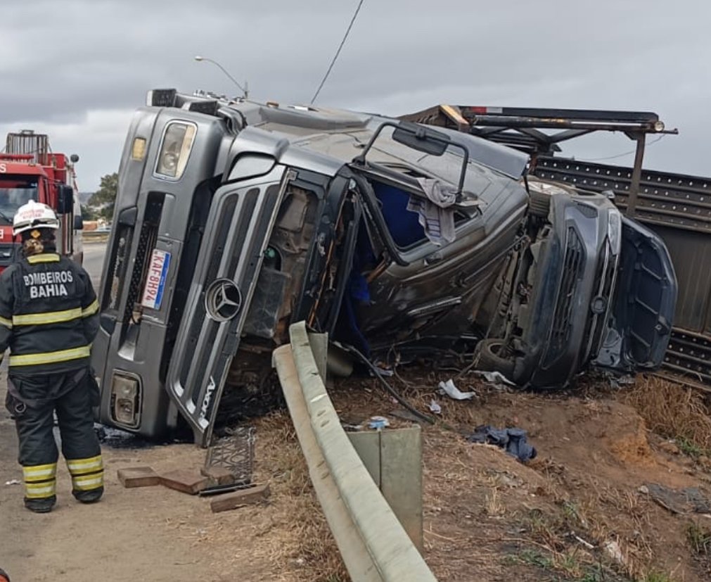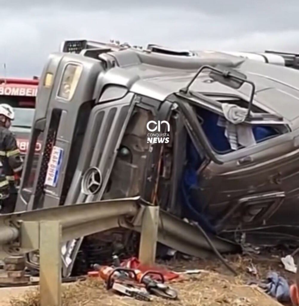 Grave acidente registrado no início da tarde desta segunda-feira, 25 de agosto, em Vitória da Conquista. Uma carreta acabou tombando em uma curva no Anel Viário e vários veículos ficaram destruídos. O motorista da carreta não resistiu e morreu no local.