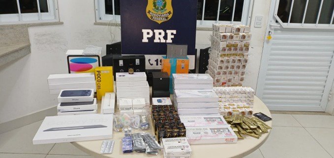 Ainda na abordagem, os policiais localizaram com o passageiro documentos relacionados à compra de produtos no exterior, o que reforçou a suspeita sobre a origem das mercadorias. Ao ser novamente questionado, o homem admitiu possuir outra bagagem armazenada no compartimento inferior do ônibus.
