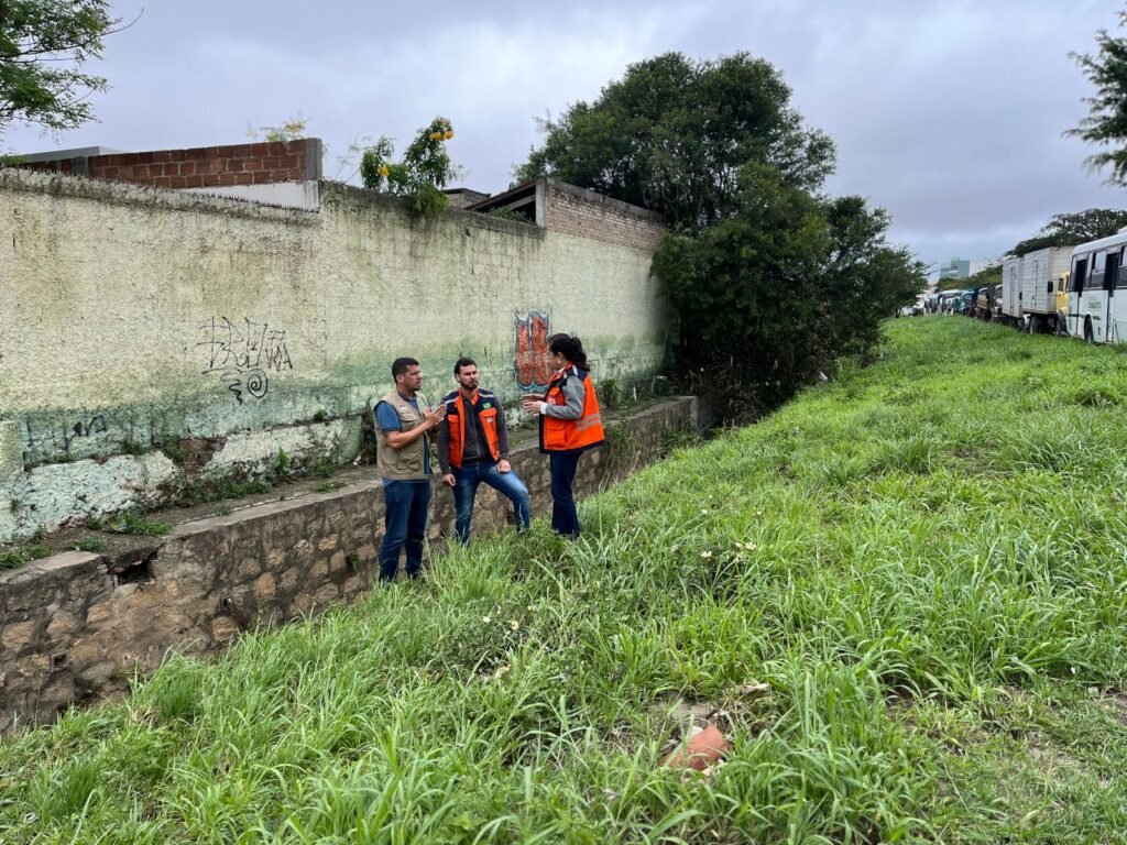 Em seguida, as equipes foram para a Avenida Fernando Spínola, por onde passa um canal de drenagem das águas pluviais. Chegando ao local, foi identificado que alguns moradores realizaram a ocupação de uma faixa de servidão (uma faixa de terra que acompanha todo o percurso de um duto ou linha de transmissão), impedindo o acesso das equipes da Prefeitura para realizar a manutenção do canal — além de realizarem ligações irregulares de esgoto, que desembocam no canal de drenagem, obstruindo a passagem da água e causando danos aos imóveis.