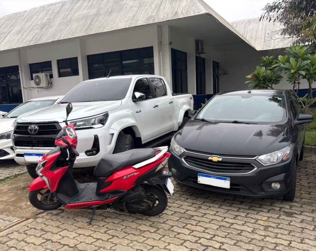 Foram apreendidos três veículos, drogas, documentos e arma de fogo