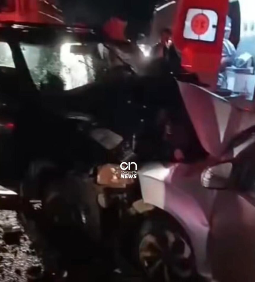 Um grave acidente foi registrado na noite deste domingo, 1º de fevereiro de 2026, no Anel Viário de Vitória da Conquista. Dois carros de passeio colidiram de frente, e com o impacto, os veículos ficaram bastante danificados.