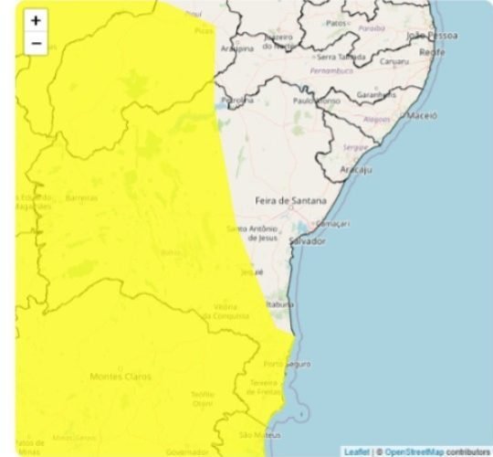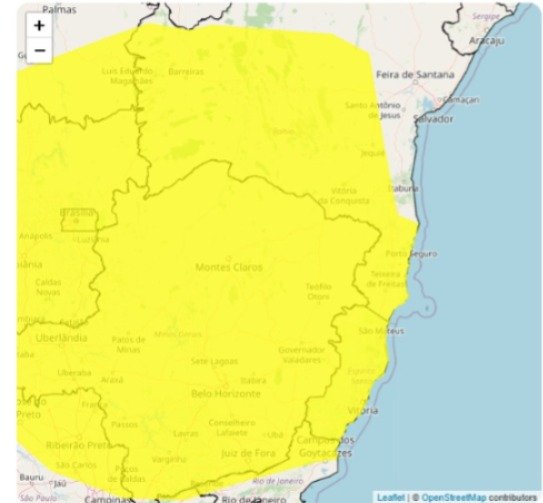 Vitória da Conquista está em alerta amarelo neste domingo (4) e deve seguir até as 23h59 de quarta-feira (7). O Instituto Nacional de Meteorologia (Inmet) divulgou um novo alerta de “Perigo Potencial” (bandeira amarela) para chuvas intensas a partir de zero hora de segunda-feira (5). O aviso meteorológico indica a possibilidade de chuvas entre 20 e 30 mm/h ou até 50 mm/dia, acompanhadas de ventos intensos, que podem atingir entre 40 e 60 km/h.