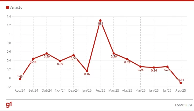 IPCA recua 0,11% em agosto e registra primeira deflação em um ano, aponta IBGE