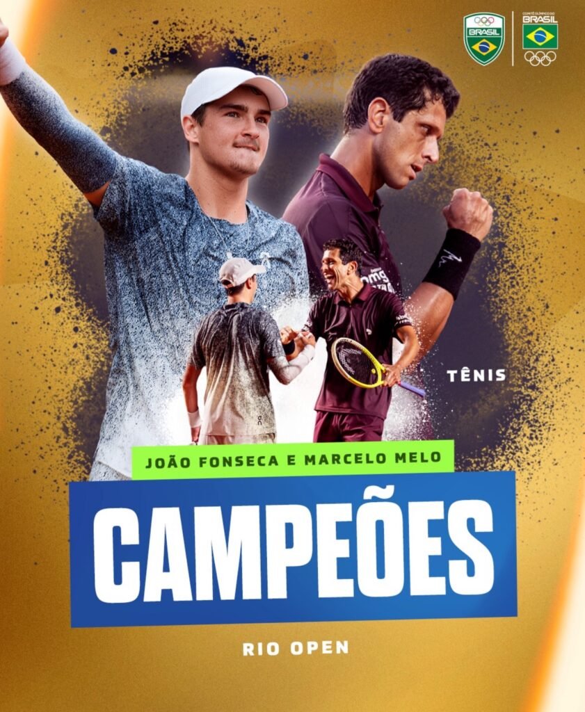 O Brasil celebrou mais um grande momento no tênis neste domingo (22). A dupla formada por João Fonseca e Marcelo Melo conquistou o título do Rio Open 2026, após uma final emocionante decidida no super tie-break.