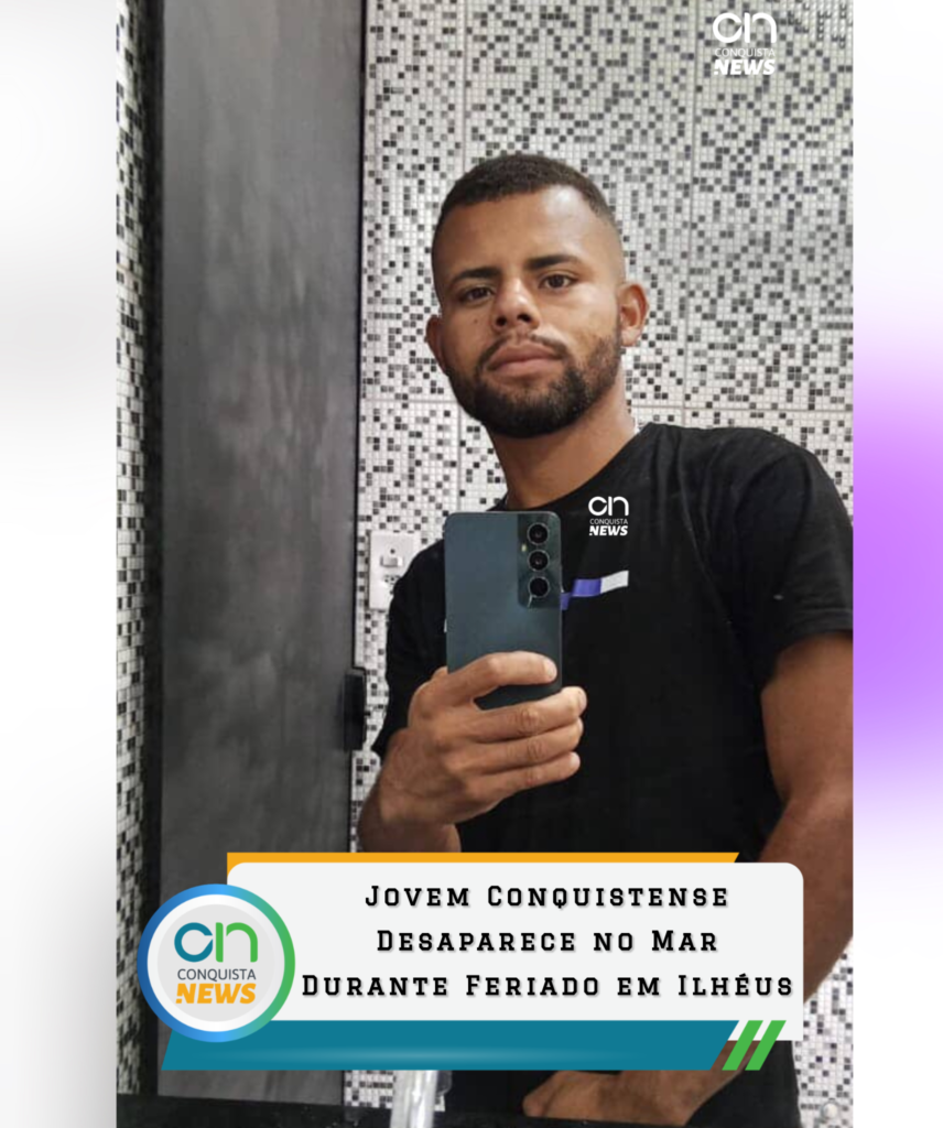 O jovem Elian Santana do Prado, de 24 anos, morador do bairro Miro Cairo, em Vitória da Conquista, está desaparecido desde a manhã de domingo (20), após entrar no mar na Praia do Norte, nas proximidades do Condomínio Japará, em Ilhéus, litoral sul da Bahia.