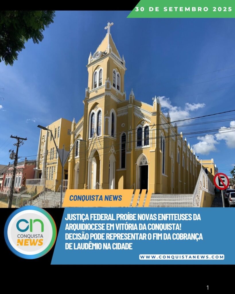 A Justiça Federal em Vitória da Conquista (BA) concedeu liminar nesta segunda-feira (29) favorável ao Ministério Público Federal (MPF) e ao Ministério Público da Bahia (MPBA), proibindo a Arquidiocese de Vitória da Conquista e o Ofício de Registro de Imóveis de realizarem novas transferências de propriedades em sete bairros da cidade em favor da Igreja.