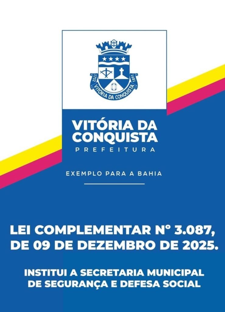 A Lei Complementar nº 3.087/2025 que institui a Secretaria Municipal de Segurança Pública e Defesa Social (SMSP), na qual a Guarda Municipal e a Defesa Civil estarão subordinadas, será sancionada nesta terça-feira (9), pela prefeita Sheila Lemos. O ato acontece no salão nobre do Gabinete da Chefia do Poder Executivo, às 11 horas.