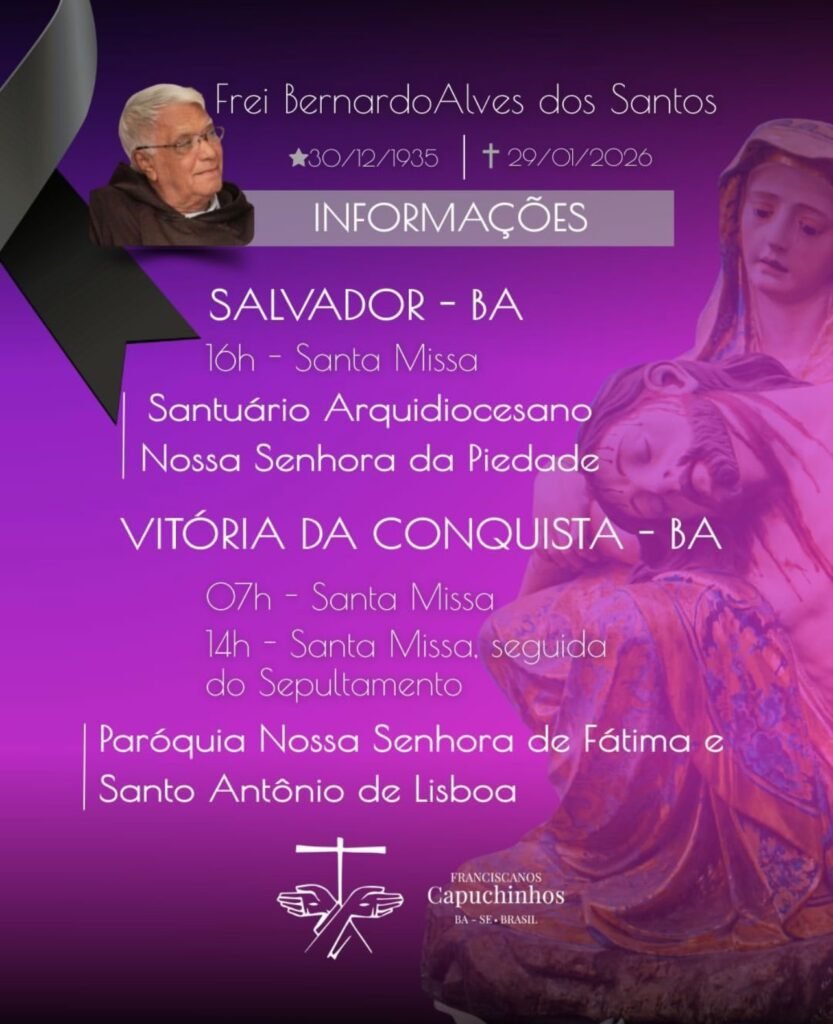 Neste momento de luto e despedida, o Conquista News manifesta solidariedade aos familiares, amigos, confrades capuchinhos e a todos que conviveram com Frei Bernardo e foram tocados por seu testemunho de fé, simplicidade e serviço.