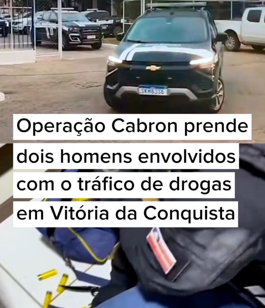 Dois homens foram presos na manhã desta quinta-feira (2), em Vitória da Conquista, durante diligências da Operação Cabron. Contra um deles foi cumprido um mandado de prisão pelo crime de tráfico de drogas, enquanto o outro foi autuado em flagrante por posse ilegal de arma de fogo. A ação tem como objetivo retirar do convívio social integrantes de uma organização criminosa voltada ao narcotráfico na região.