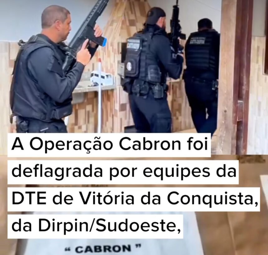 A Operação Cabron foi deflagrada por equipes da Delegacia de Tóxicos e Entorpecentes (DTE) de Vitória da Conquista, da Diretoria Regional de Polícia do Interior (Dirpin), do Departamento de Repressão e Combate à Corrupção, ao Crime Organizado e à Lavagem de Dinheiro (Draco), 10ª Coordenadoria Regional de Polícia do Interior (Coorpin/Vitória da Conquista), da Delegacia de Homicídios (DH) e da Delegacia de Repressão Furtos e Roubos (DRFR) também do município.