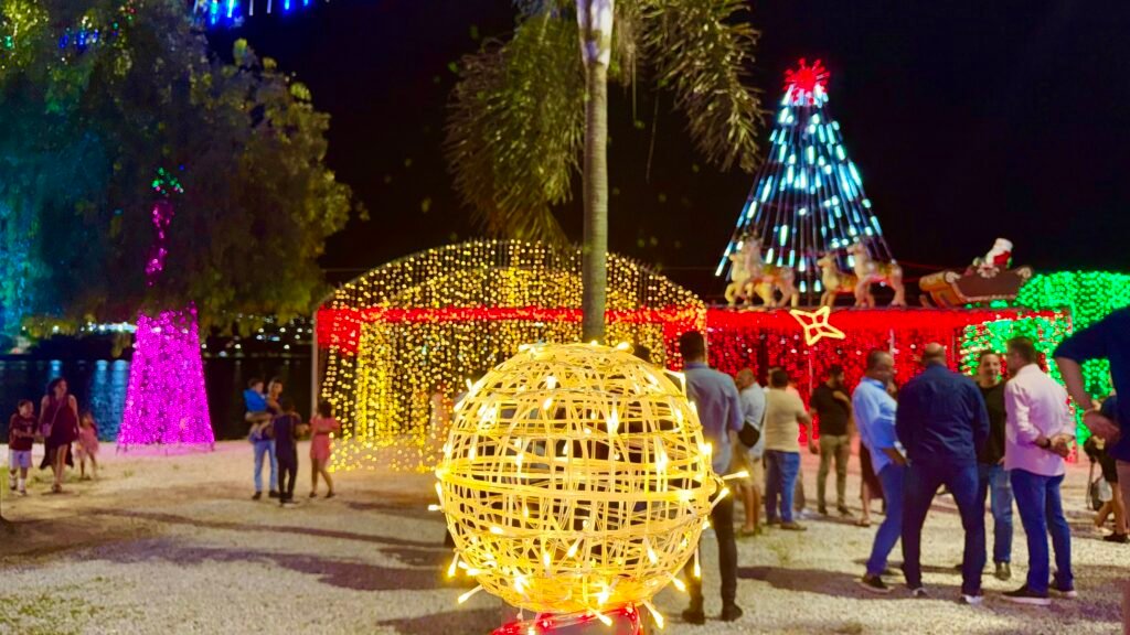 Foi inaugurada neste domingo (7), a iluminação de Natal do Parque Municipal Lagoa das Bateias. A iniciativa, promovida pela Prefeitura de Vitória da Conquista, por meio da Secretaria Municipal de Cultura (Secult), teve início após um amplo processo de revitalização do espaço, que vem se consolidando como um dos principais pontos de lazer e convivência da zona oeste da cidade.