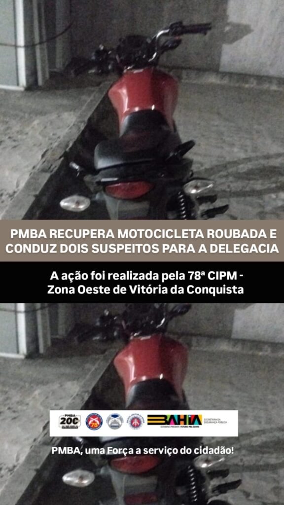 Na noite deste domingo (12), uma guarnição da 78ª CIPM recuperou no bairro Nossa Senhora Aparecida uma motocicleta com restrição que foi roubada mais cedo no bairro Ibirapuera por dois indivíduos.