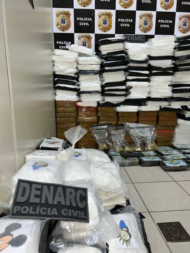 Durante a abordagem, os investigadores apreenderam 248 tabletes de entorpecentes, sendo a maior parte composta por cocaína, pasta base e crack, além de centenas de munições dos calibres 9mm, .40 e .380. O caminhão utilizado no transporte também foi apreendido.