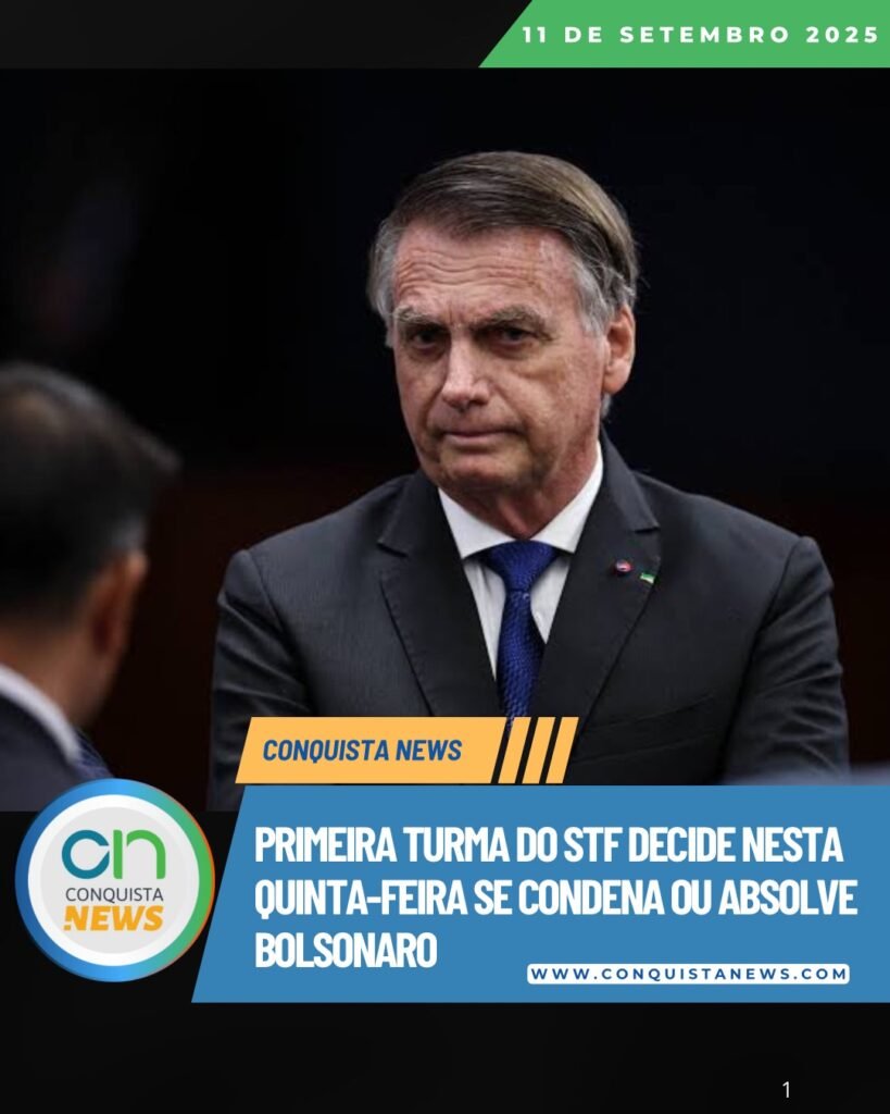 A Primeira Turma do Supremo Tribunal Federal (STF) pode definir nesta quinta-feira (11/9) se condena ou absolve o ex-presidente Jair Bolsonaro (PL) e outros sete réus acusados de participação em uma suposta tentativa de golpe de Estado. A sessão está marcada para as 14h (horário de Brasília).