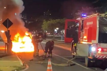 Um veículo foi completamente destruído pelo fogo na noite desta quinta-feira (16),…