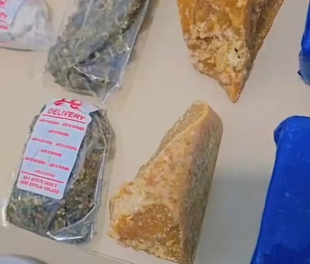 Na ação, foram apreendidas 97 petecas de substância análoga à cocaína, cinco tabletes inteiros de maconha, cinco pedaços grandes de cocaína, quatro pedaços grandes de crack, além de um pedaço de tablete de maconha e cinco petecas de crack.