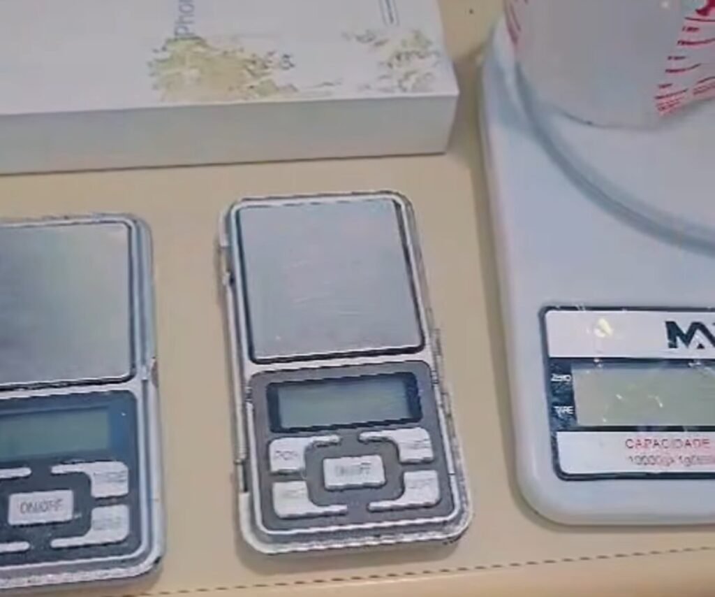 Também foram encontrados quatro balanças de precisão, um notebook, um aparelho celular do tipo iPhone, dois cartões de crédito e diversos materiais utilizados para a embalagem de entorpecentes, o que reforça a suspeita de que o local funcionava como ponto de preparo e distribuição de drogas.