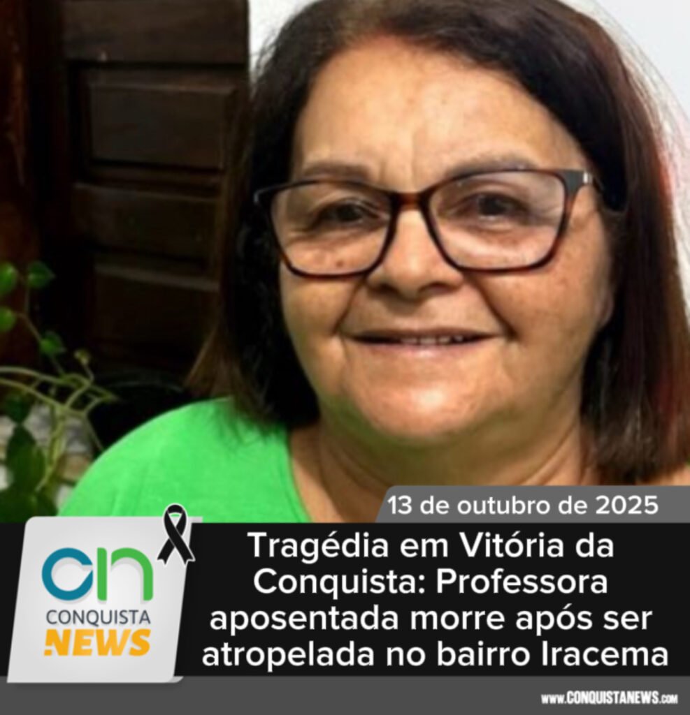 Uma tragédia foi registrada em Vitória da Conquista neste fim de semana. A professora aposentada Elza Teixeira faleceu após ser atropelada por uma motocicleta no bairro Iracema, na noite de sábado (11).