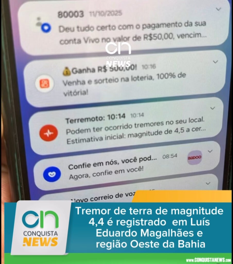 Um terremoto, com magnitude estimada em 4,4 MW, foi registrado na manhã desta terça-feira (14), por volta das 10h14, na cidade de Luís Eduardo Magalhães e em outras localidades da região Oeste da Bahia.